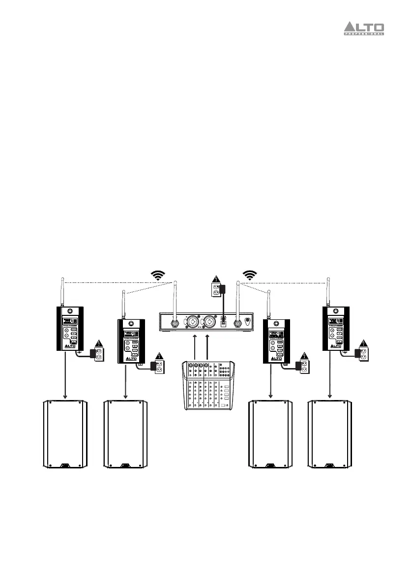 Para enviar señales estéreo del transmisor Stealth Wireless a cuatro receptores: