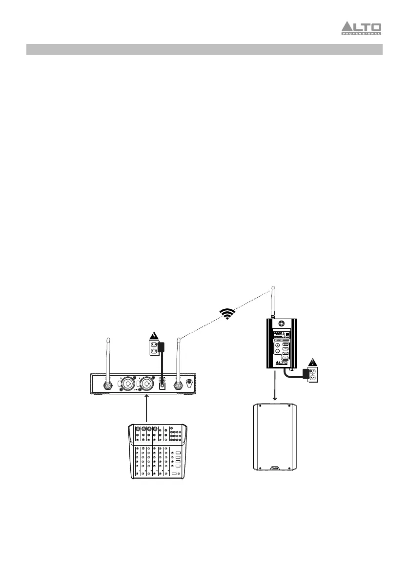 du volume de la console de mixage et des commandes volume de l’émetteur au minimum.