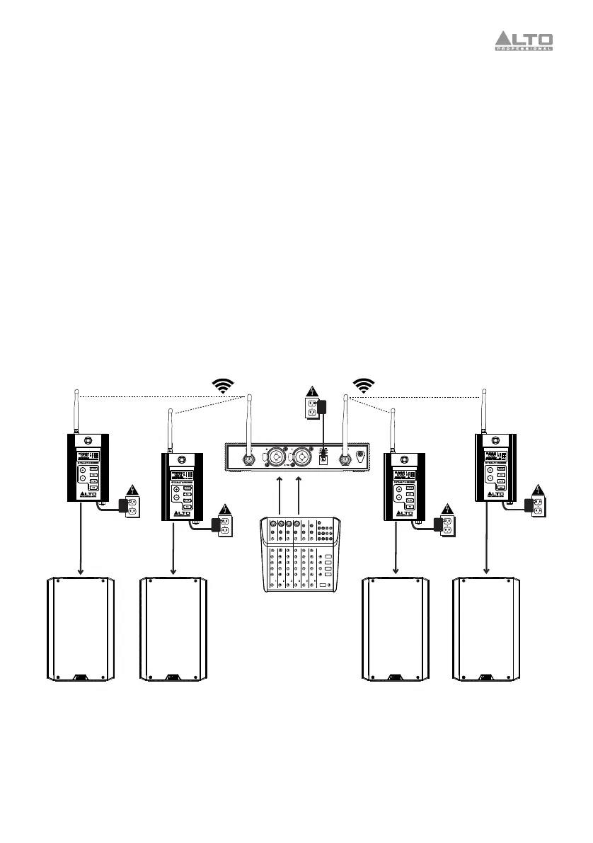 collegare le uscite dei ricevitori Stealth Wireless agli ingressi dell'altoparlante. Mantenere tutti i