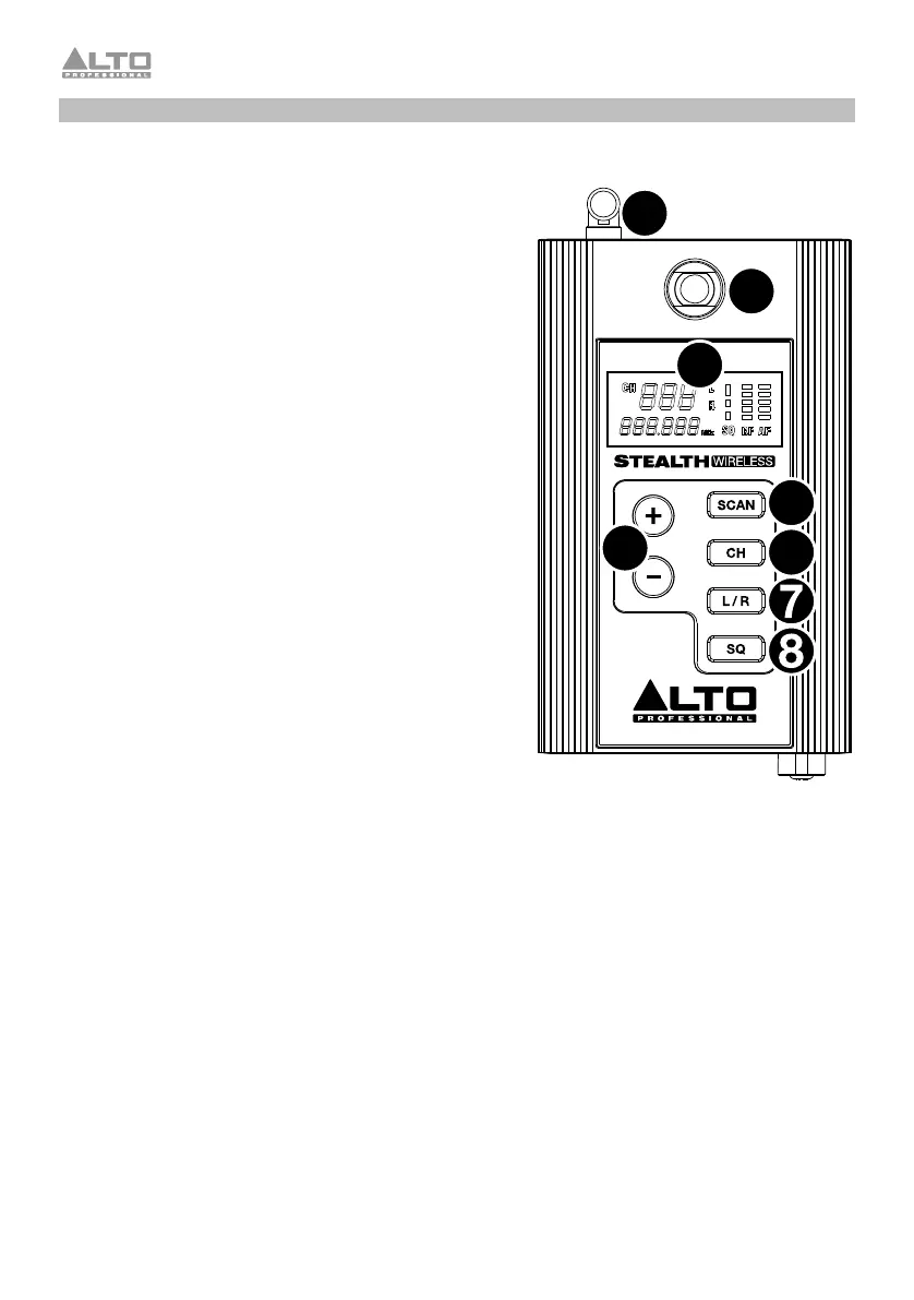 8. SQ (Squelch): premere questo tasto per impostare un limite al livello di segnale RF.. I segnali in