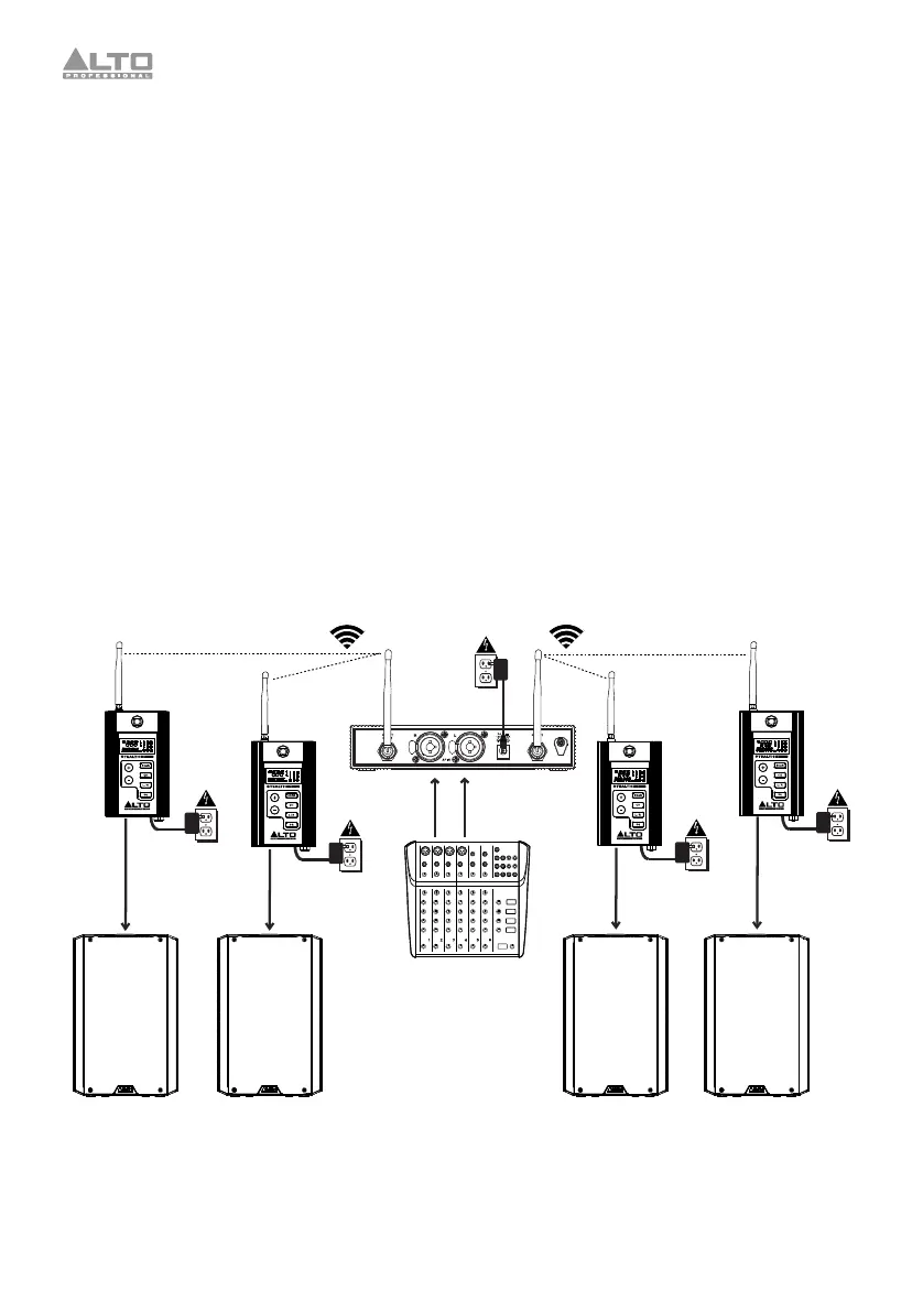 So senden Sie Stereo-Signale über den Stealth Wireless-Sender an vier Empfänger: