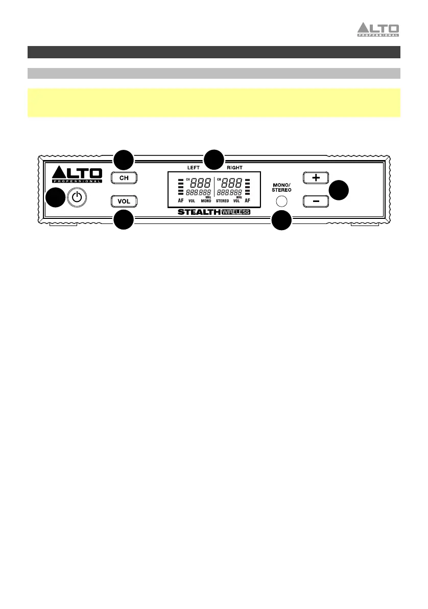 4. Display: Dieses Display zeigt den aktuellen Kanal, Frequenz und AF-Lautstärke. Siehe Display
