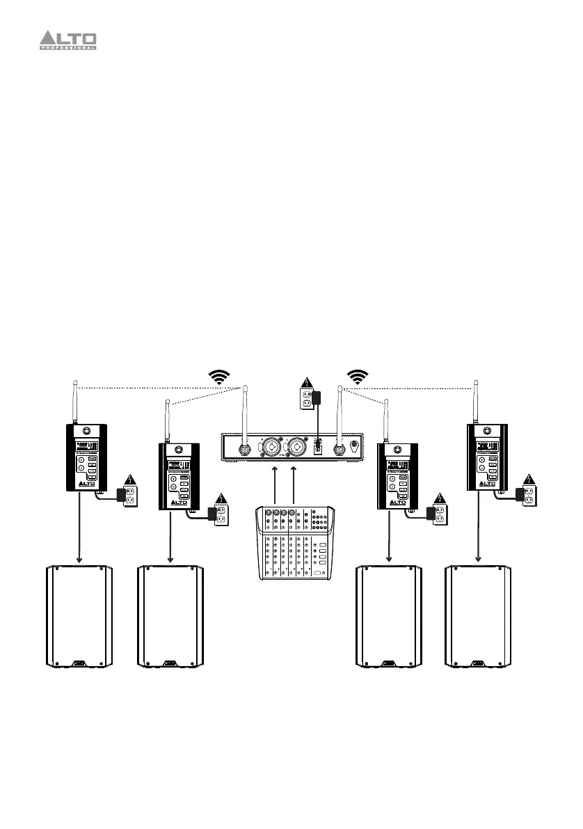 transmitter and connect the receivers’ outputs to your loudspeakers’ inputs. Keep all mixer