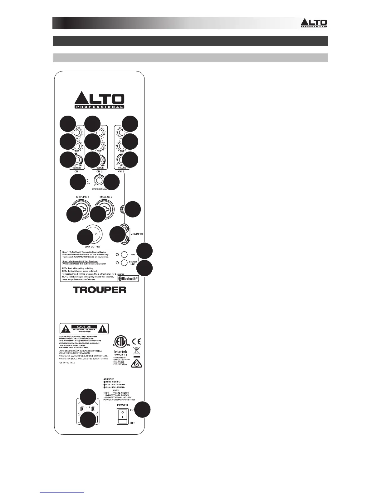 12. Salida de enlace: Utilice un cable XLR estándar (no