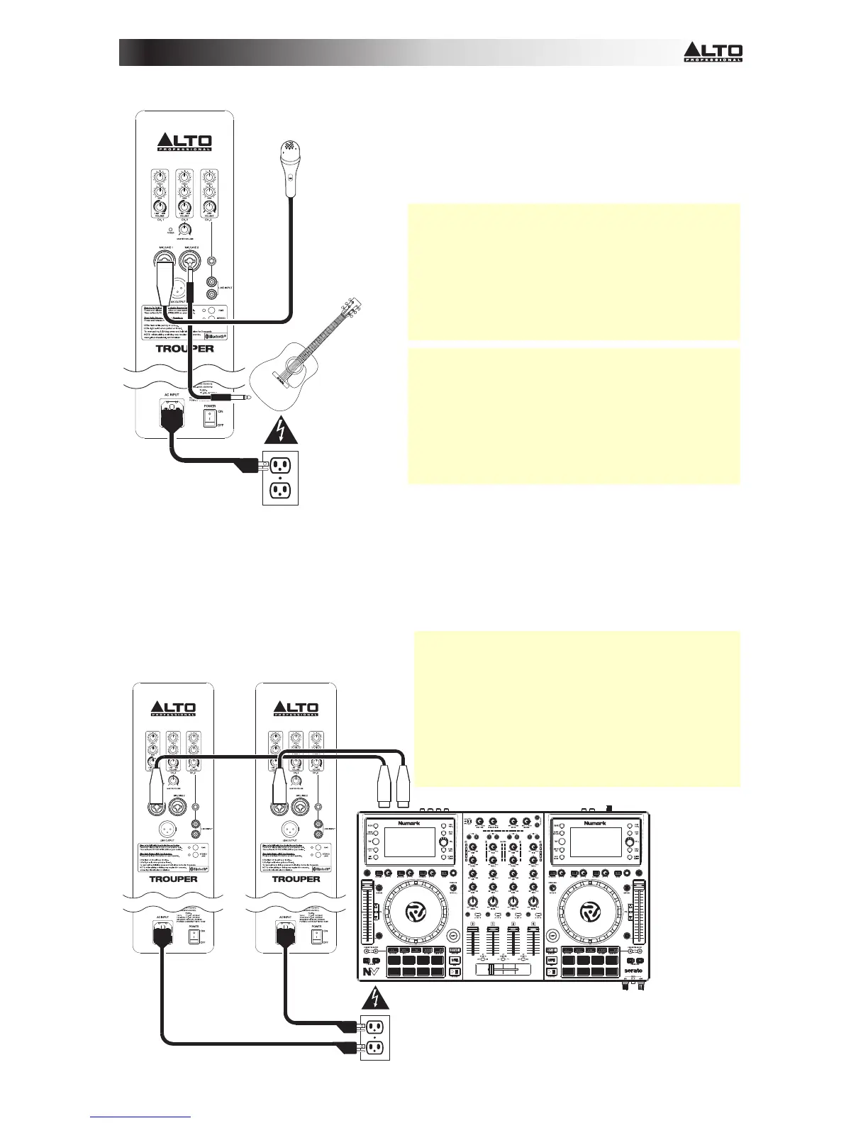 Exemple 2 : haut-parleur Trouper avec microphone pour voix et guitare avec micro actif :