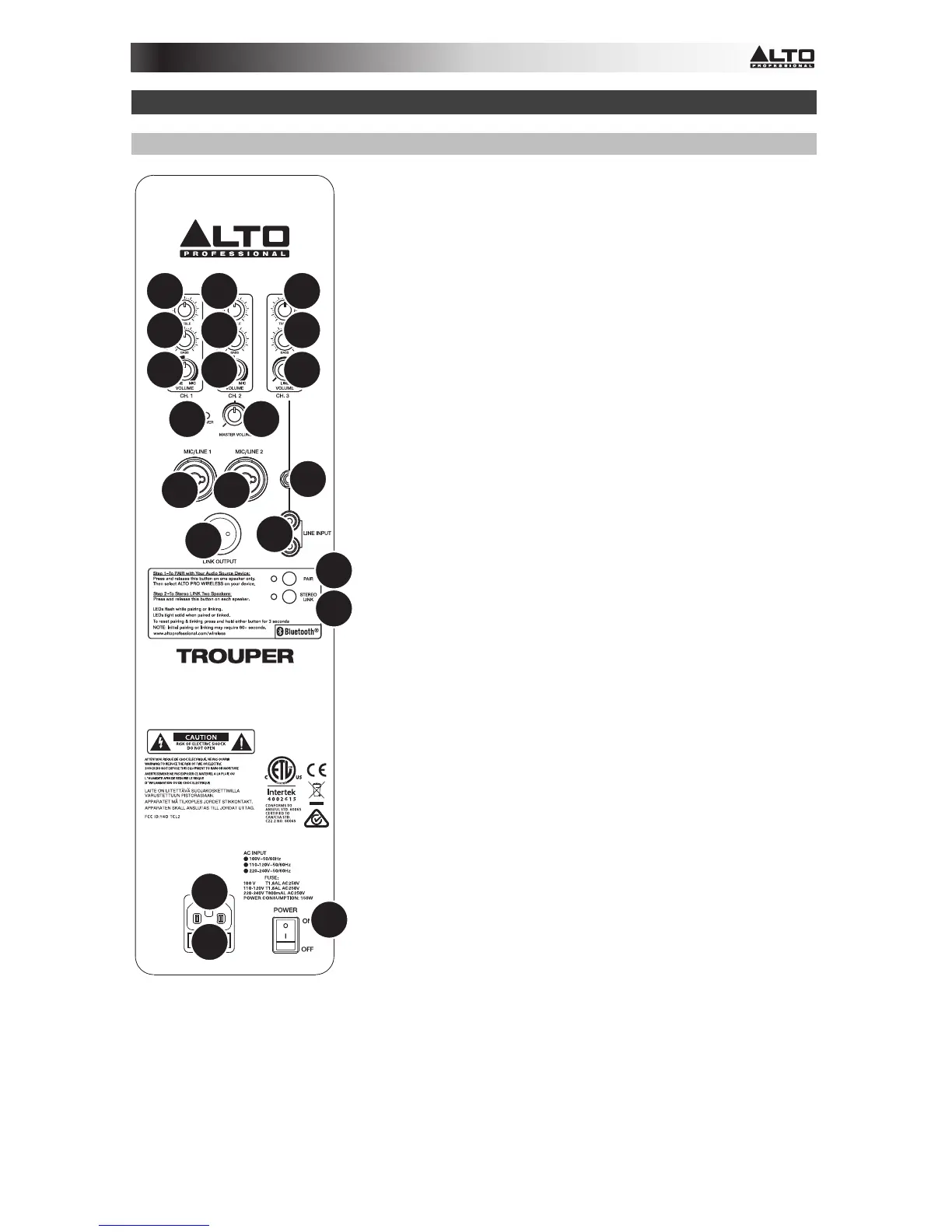 10. Input Treble: regola le frequenze alte/treble del canale. (Il