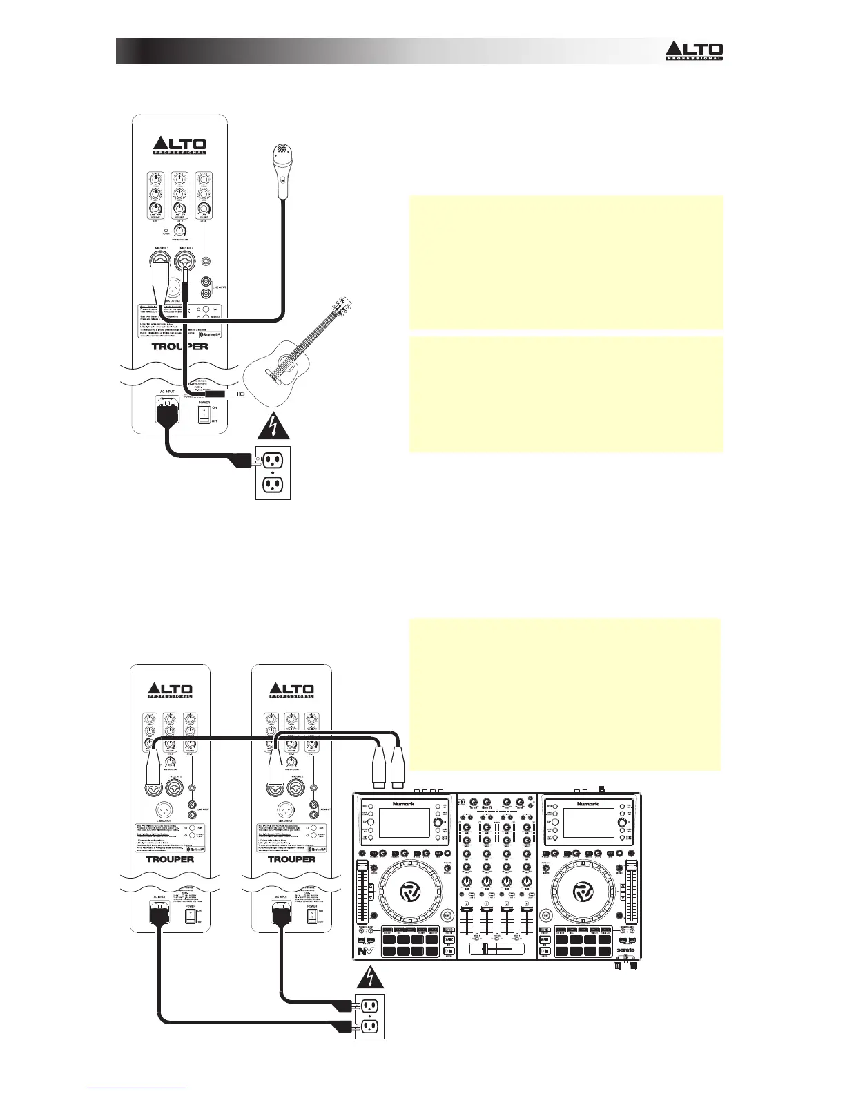 Voorbeeld 2: Enkele Trouper-luidspreker met stemmicrofoon en gitaar met actieve pickup:
