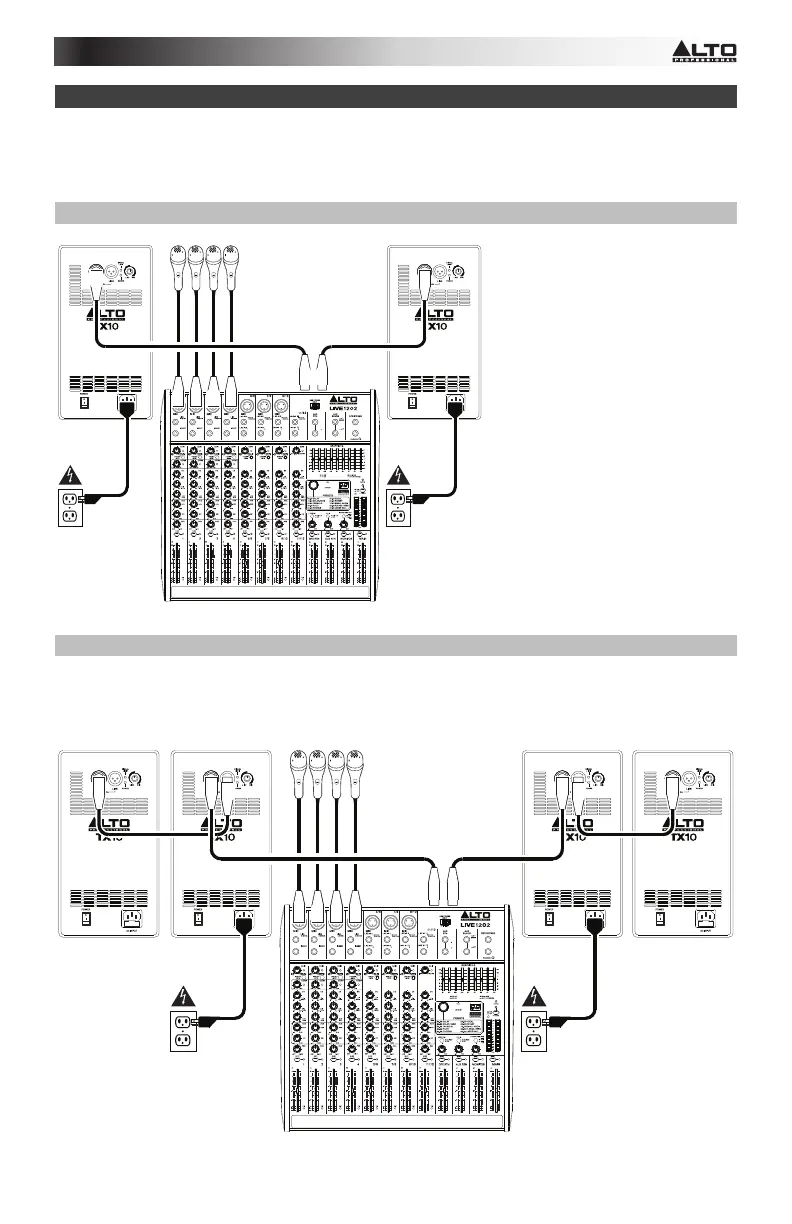 Collegare ciascuna delle uscite main del mixer all'Ingresso di un altoparlante TX. Collegare