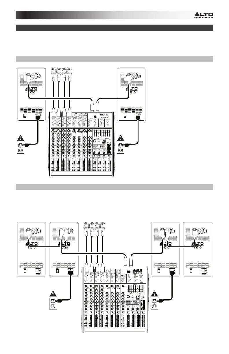 Sluit elk van de hoofduitgangen van uw mixer aan op de Ingang van een TX-luidspreker.