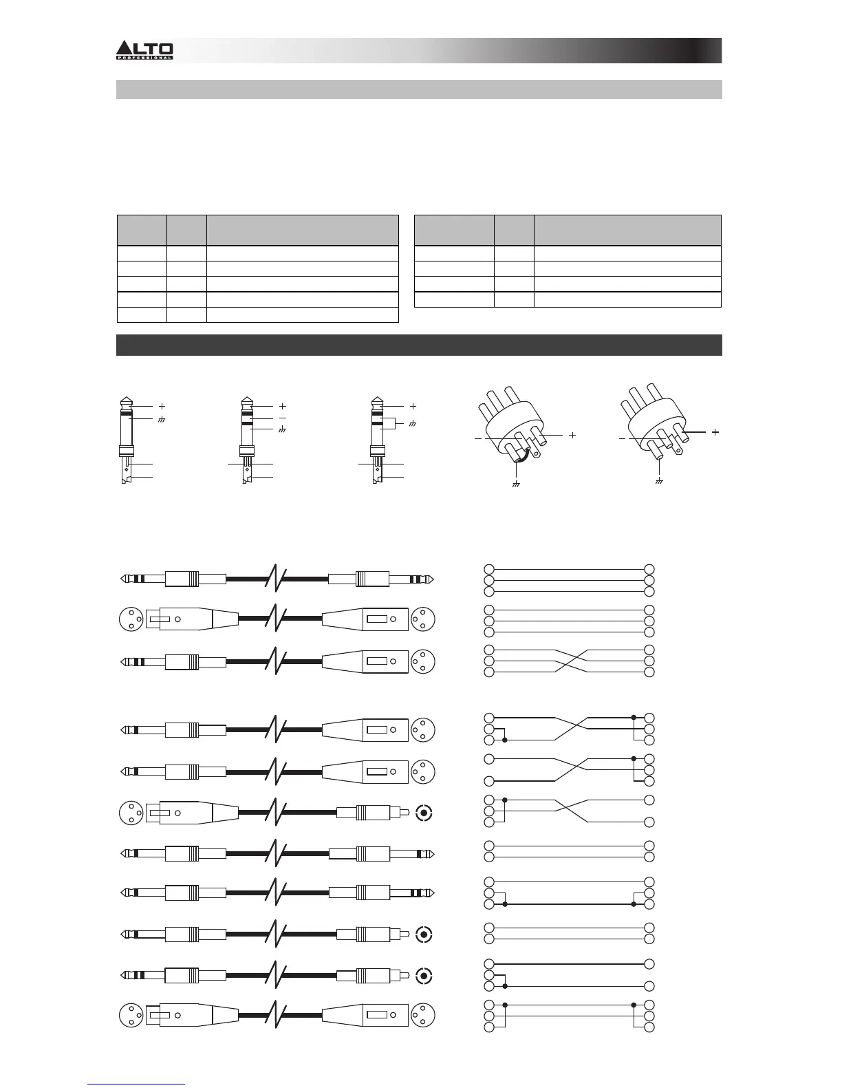 Si possono cablare i fili XLR o TRS da 1/4" come bilanciati o non bilanciati. Ecco alcuni esempi:
