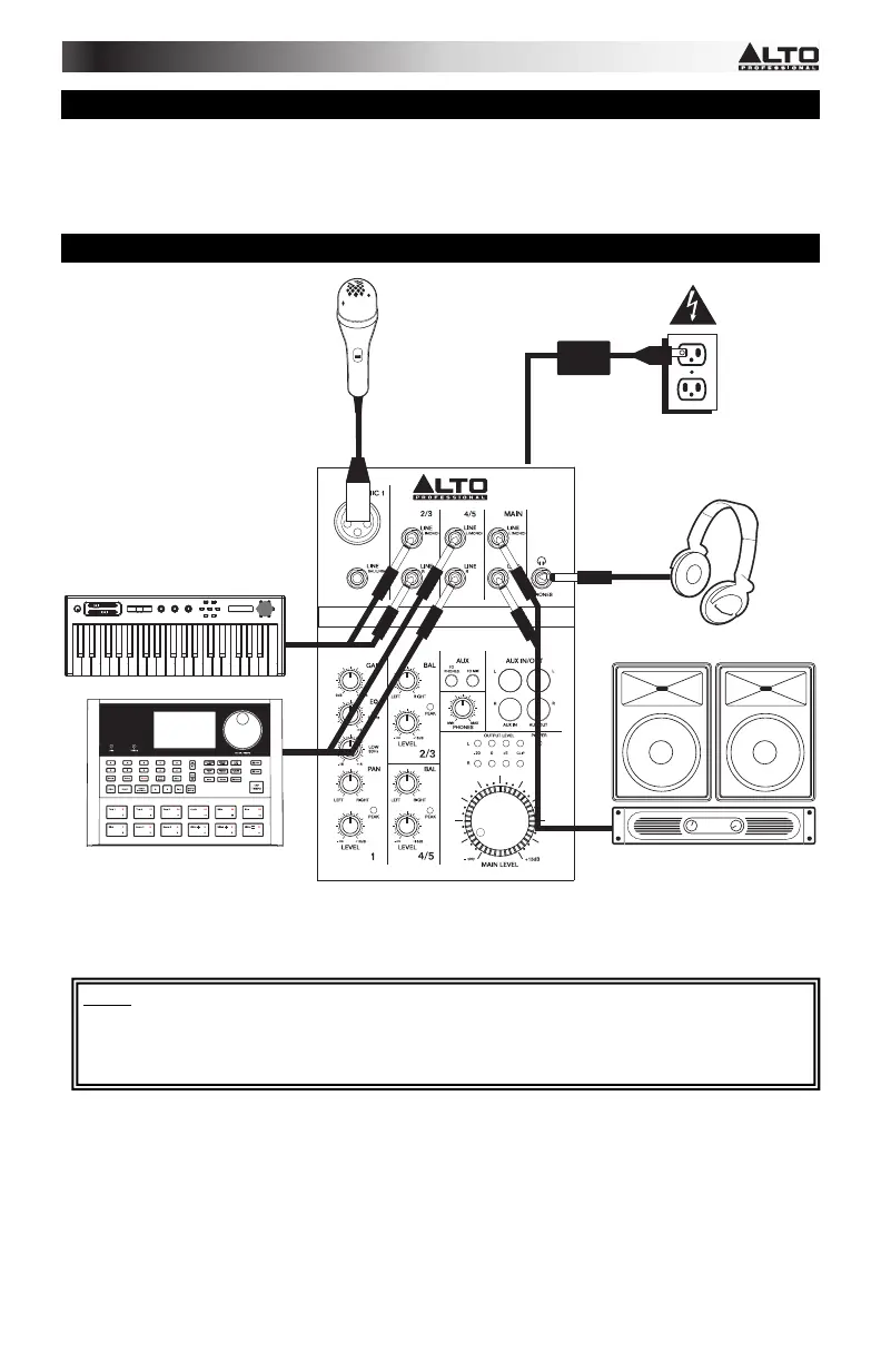 y To reduce electrical hum at high gain settings, keep the mixer's power supply away from your guitar