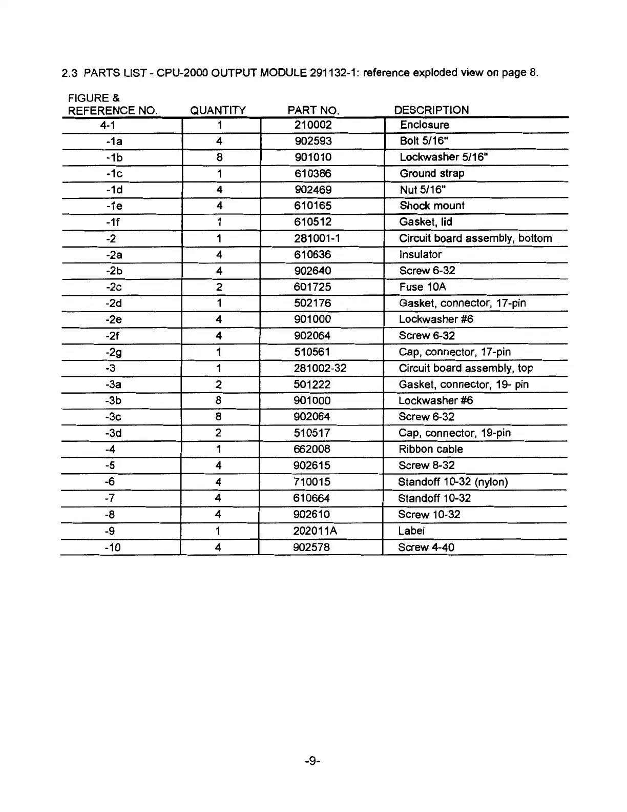 - CPU-2000 OUTPUT MODULE 291132-1: reference exploded