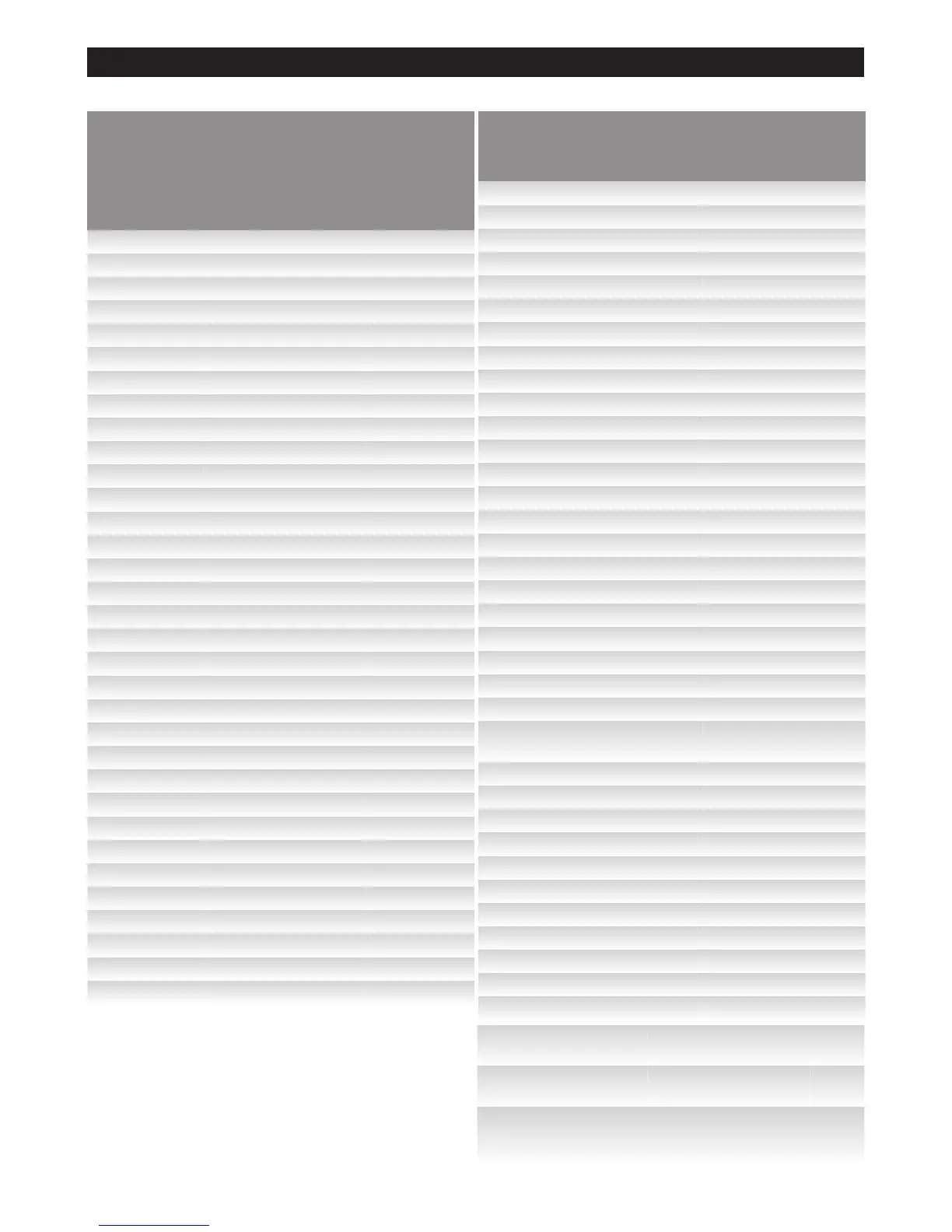 RS-232 CONTROL TABLE