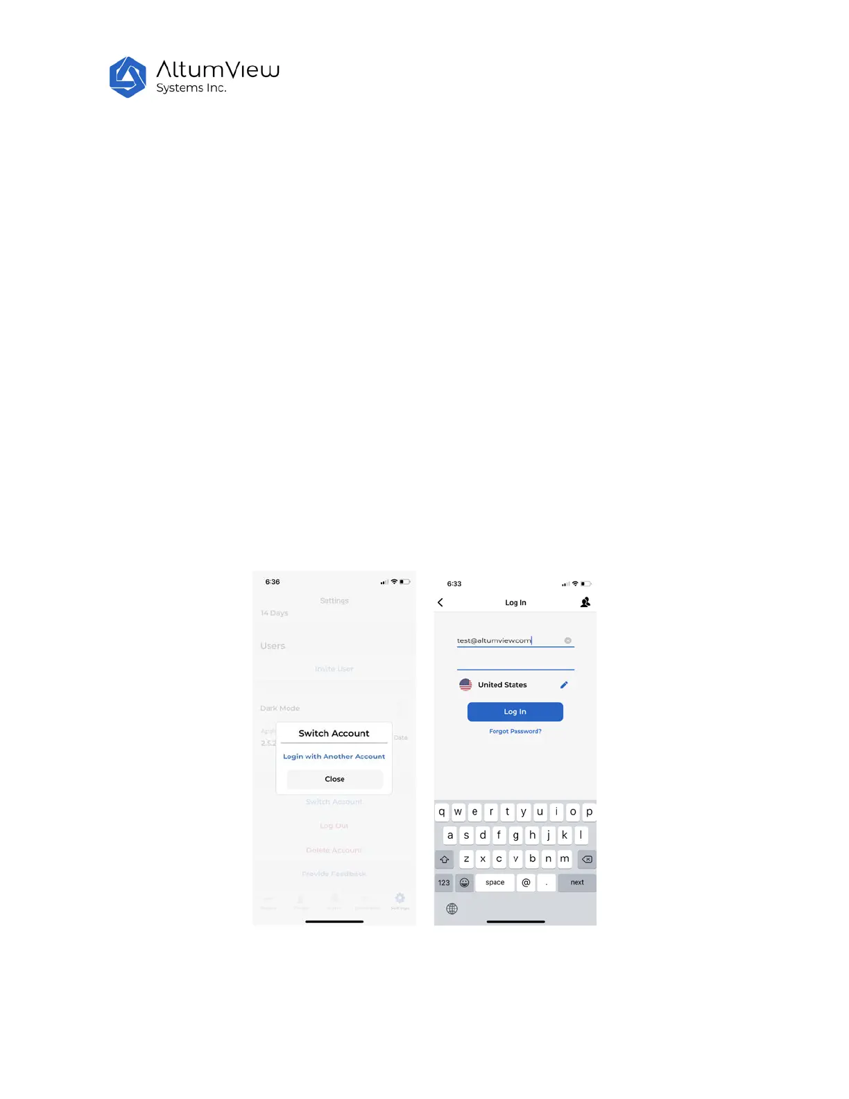 can tap the Login with Another Account command, and the App will go to the login page, where users