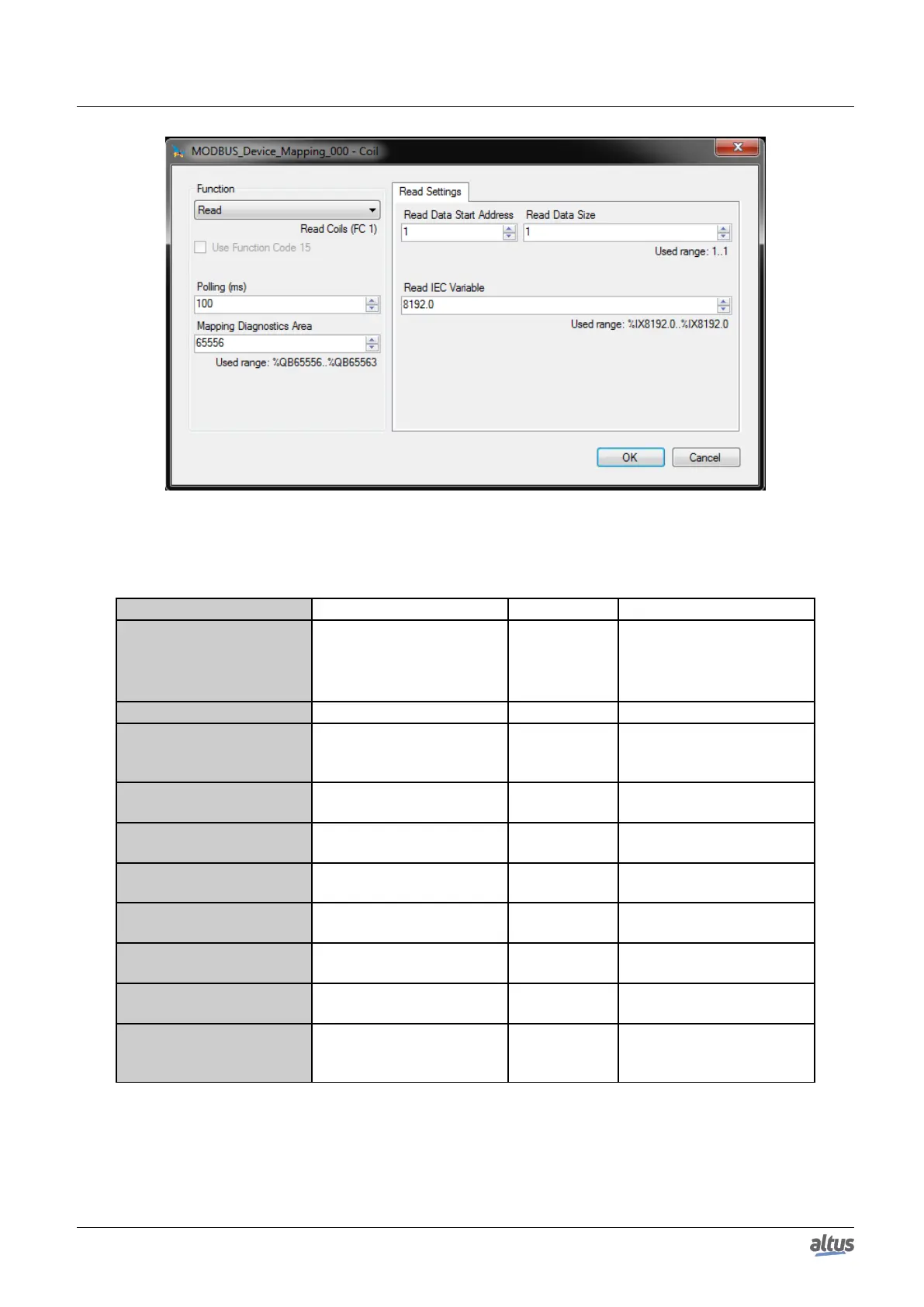 Function MODBUS function type Read