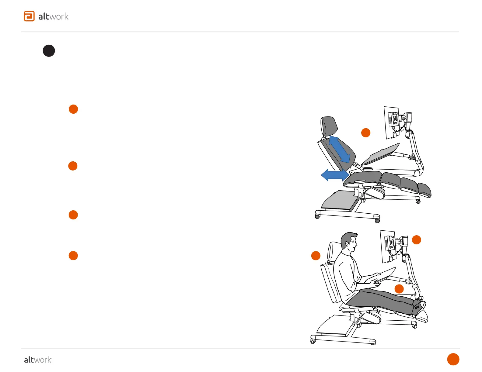 you move. The Desktop, Monitor, and Headrest will continuously adjust to you as you recline, sit, or stand.