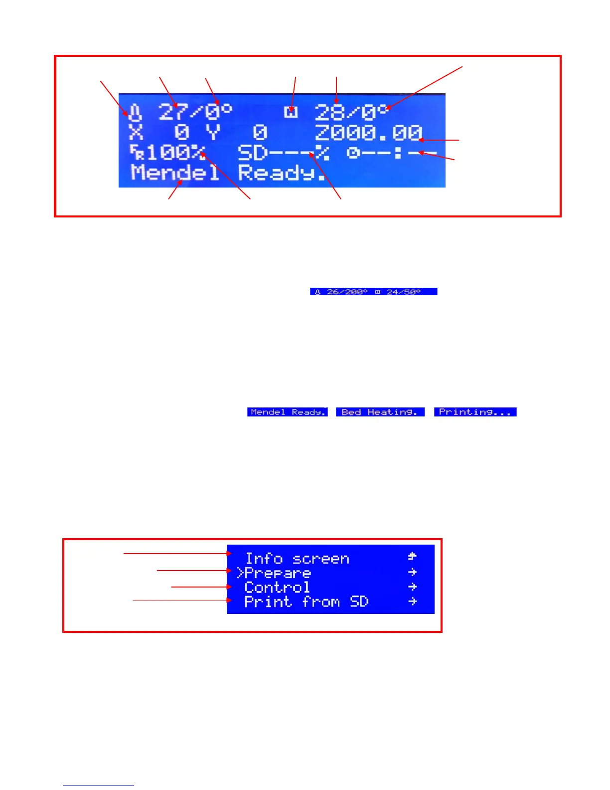 It will show the temperature of nuzzle and hotbed, the two parts separated by “/” will show respectively before