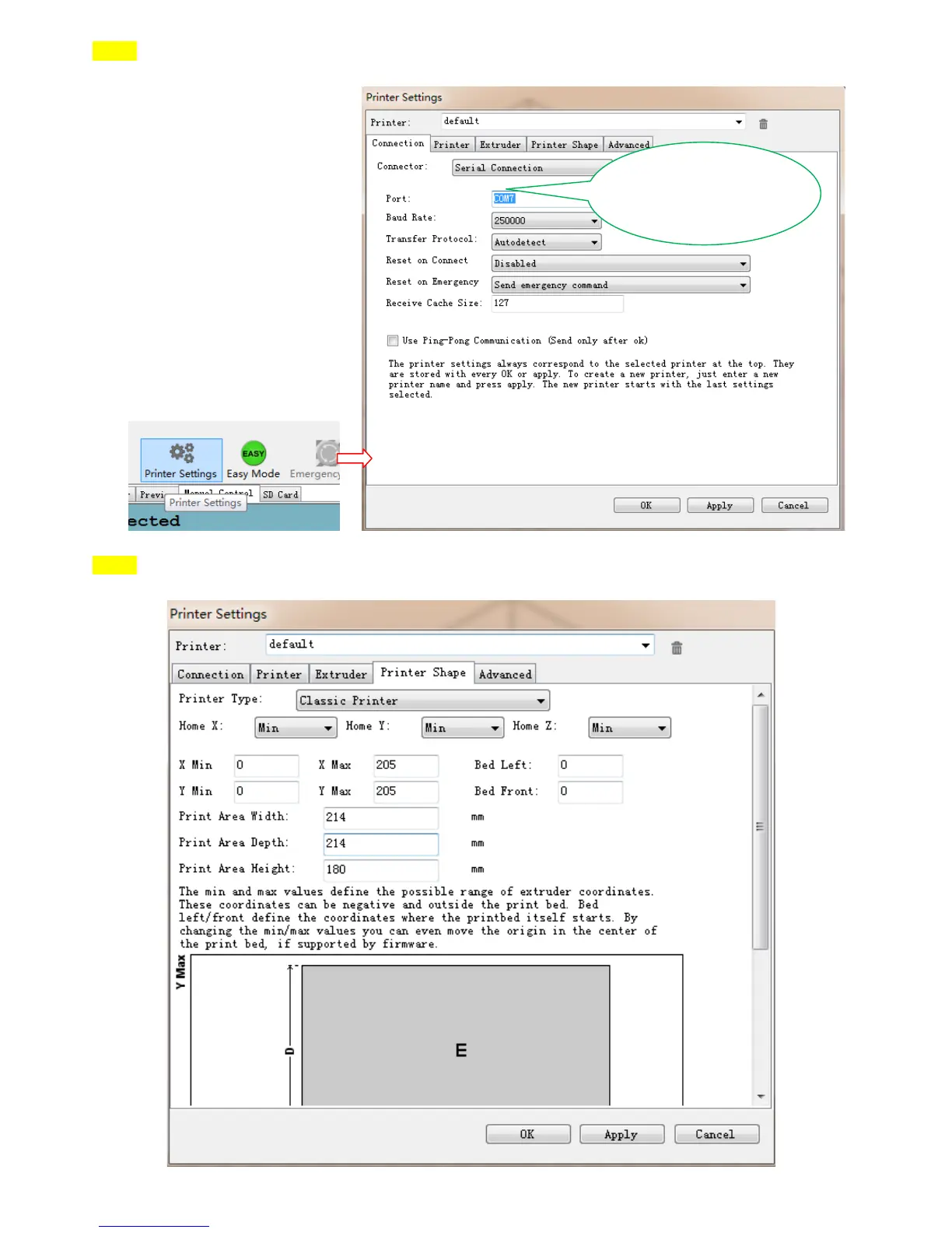 Step1: Choose the correct baud rate and COM port