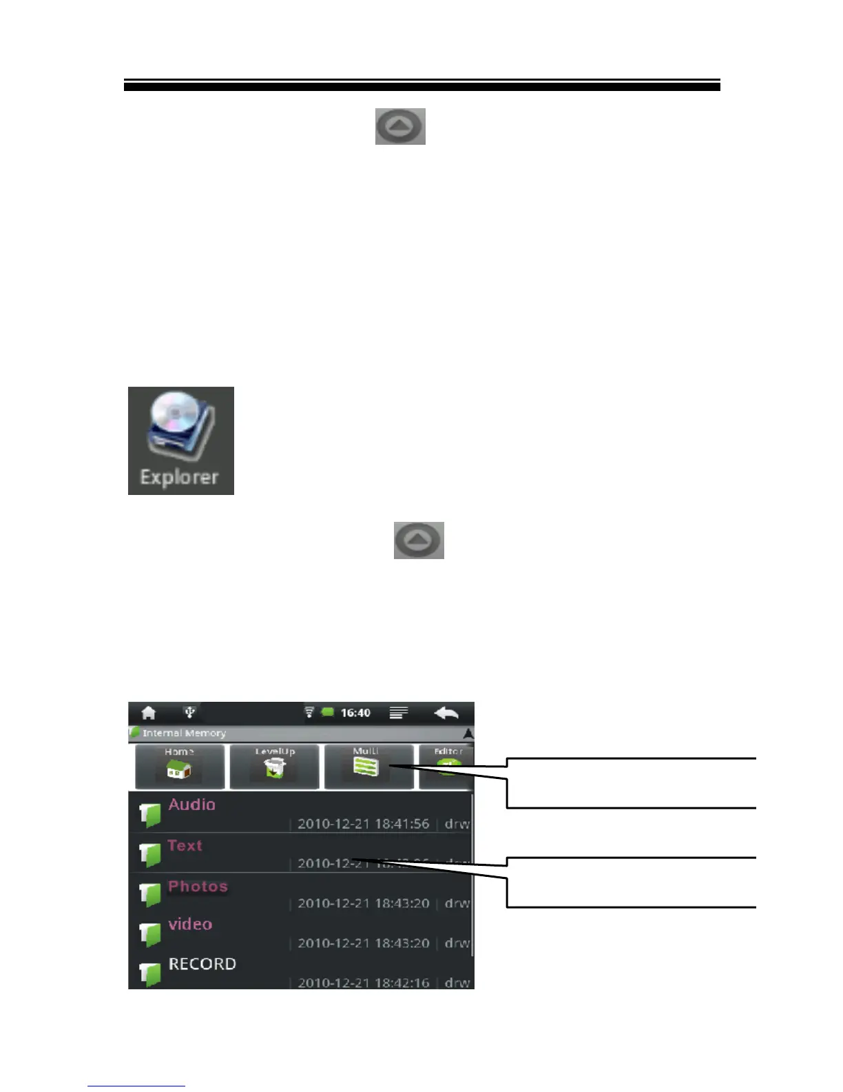 Menu. Then tap the Explorer button to view the Explorer