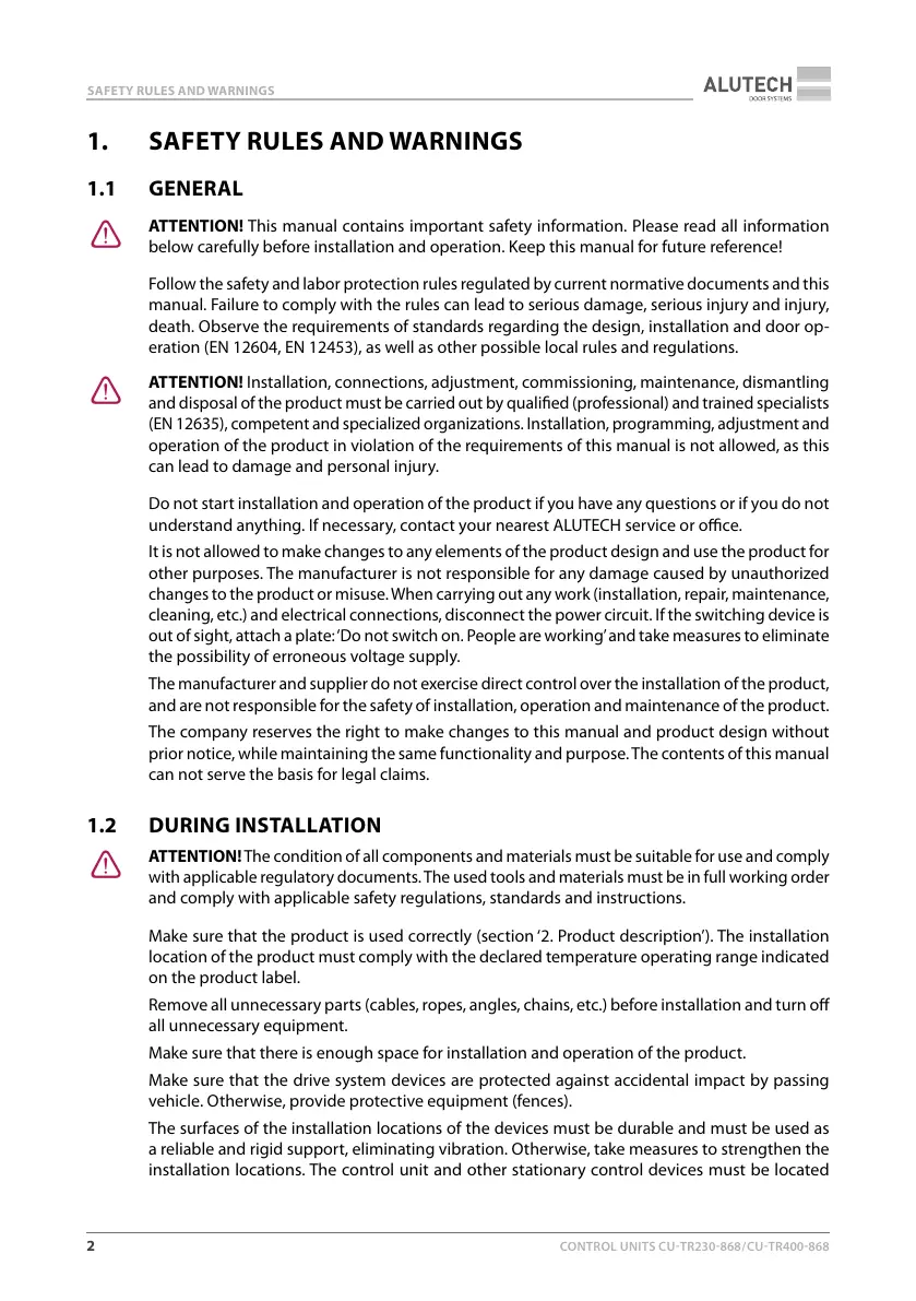 understand anything. If necessary, contact your nearest ALUTECH service or oce.