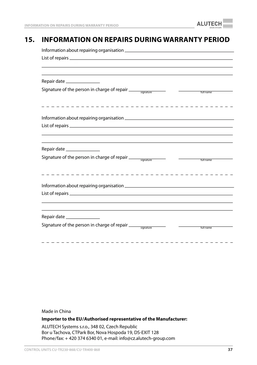 Phone / fax: + 420 374 6340 01, e-mail: info@cz.alutech-group.com