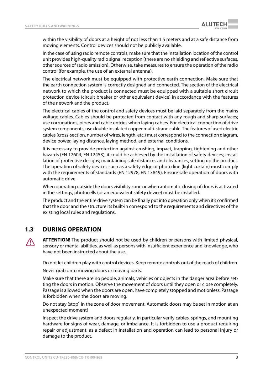 with the requirements of standards (EN12978, EN13849). Ensure safe operation of doors with