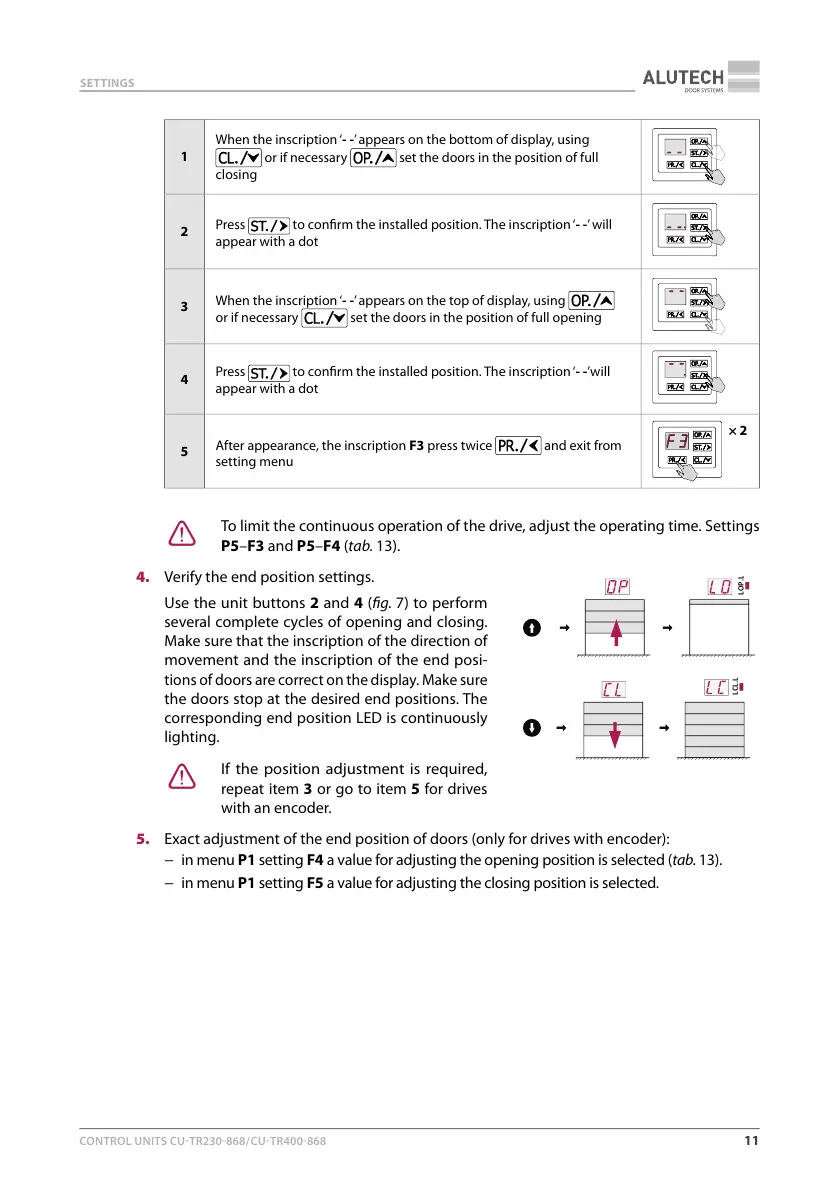 5. Exact adjustment of the end position of doors (only for drives with encoder):