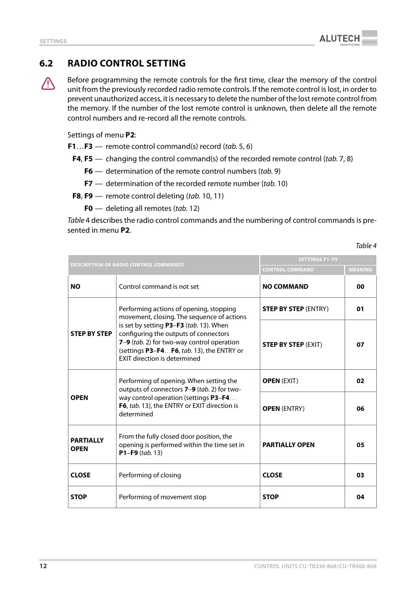 Alutech CU-TR400-868 - Radio Control Setup and Operations