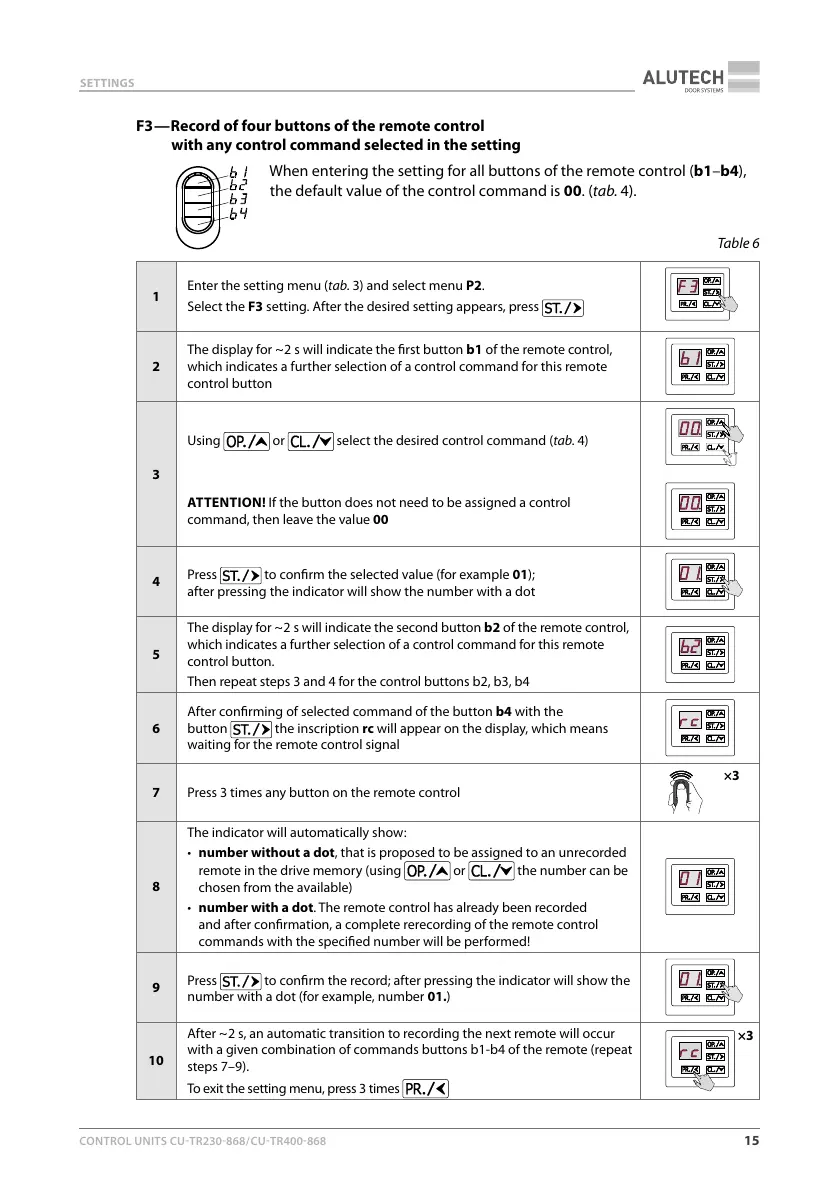 or select the desired control command (tab.4)