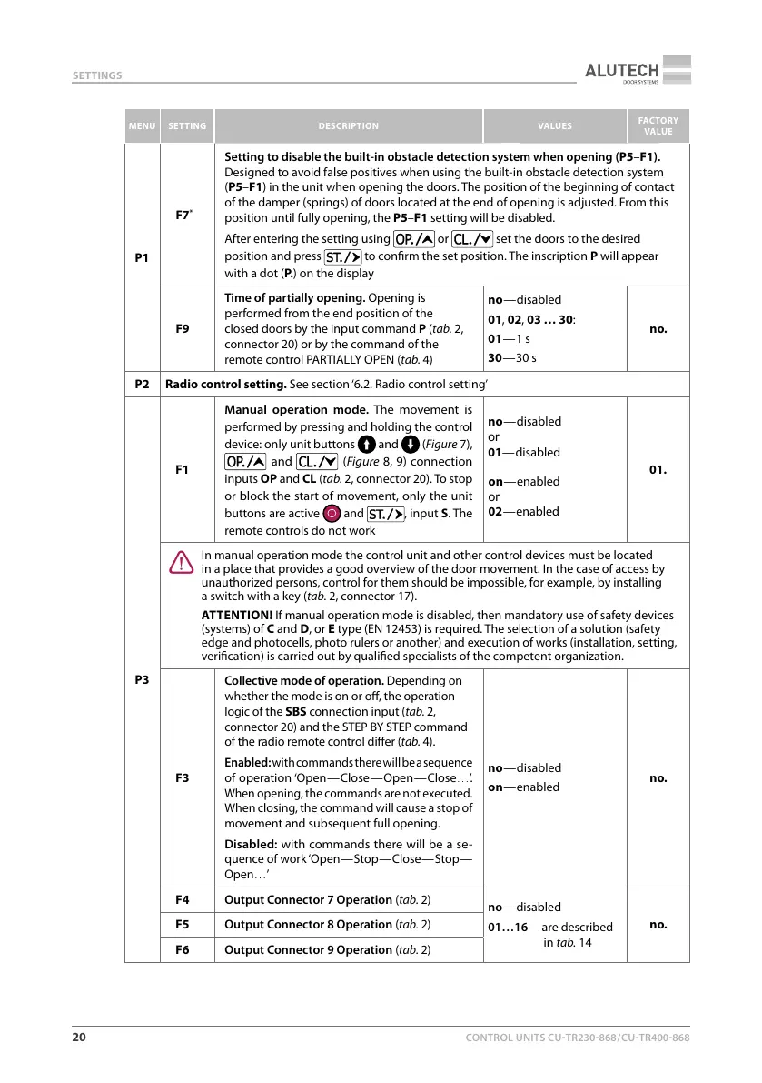 ATTENTION! If manual operation mode is disabled, then mandatory use of safety devices