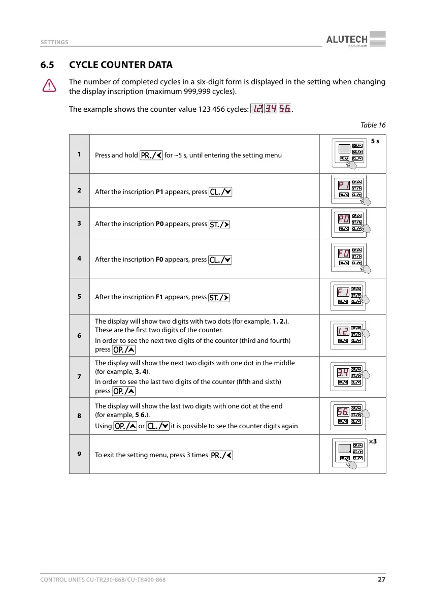 The number of completed cycles in a six-digit form is displayed in the setting when changing