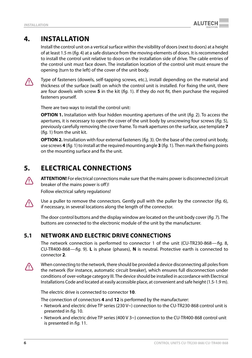• Network and electric drive TP series (230V~) connection to the CU-TR230-868 control unit is