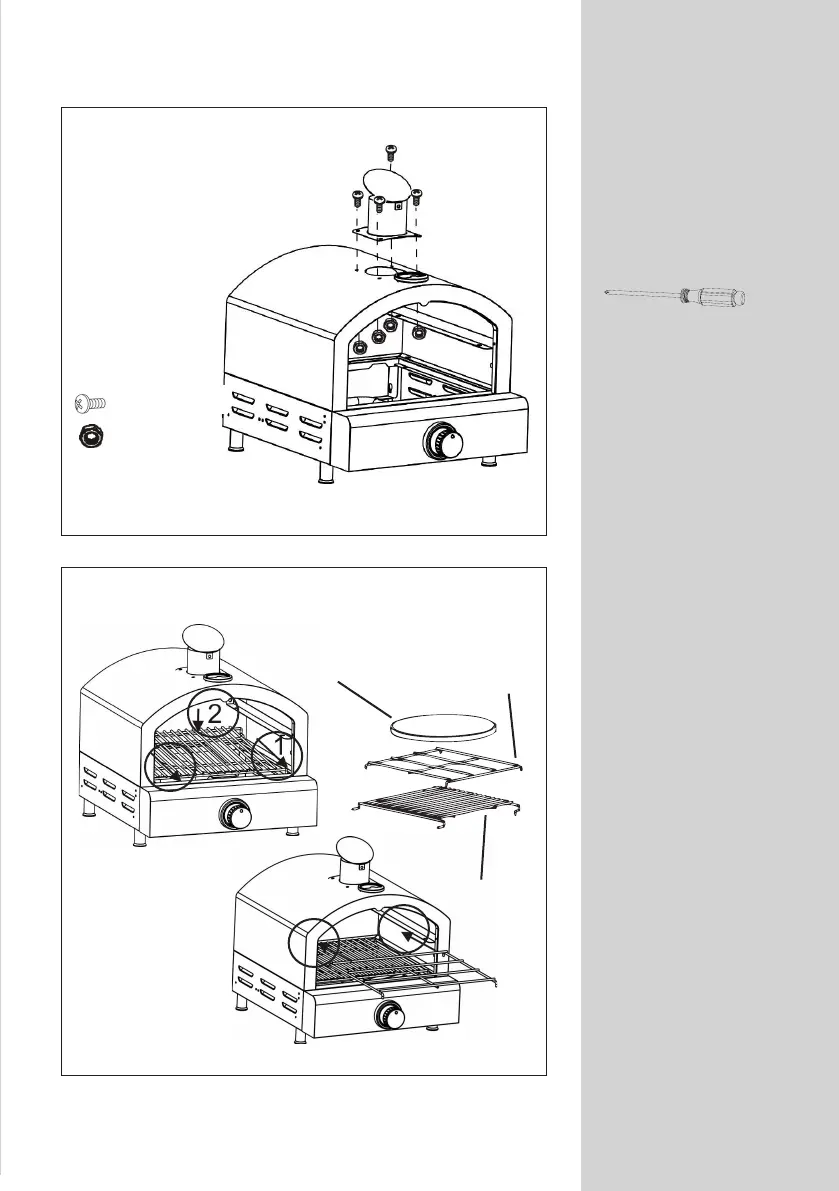 Attach the chimney using the - M5x8 screws and the 4x M5 Nuts