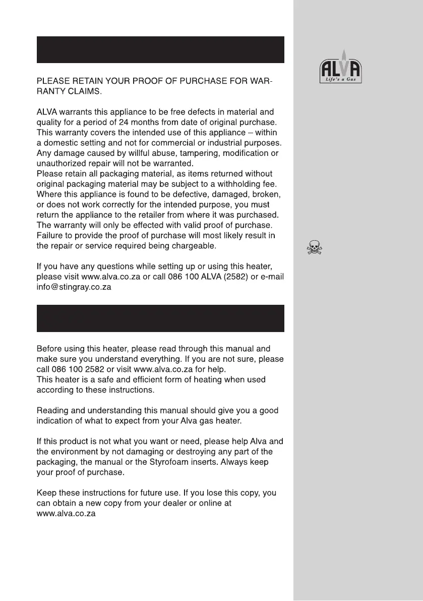 Alva GH312 - GENERAL INFORMATION; Usage Dangers