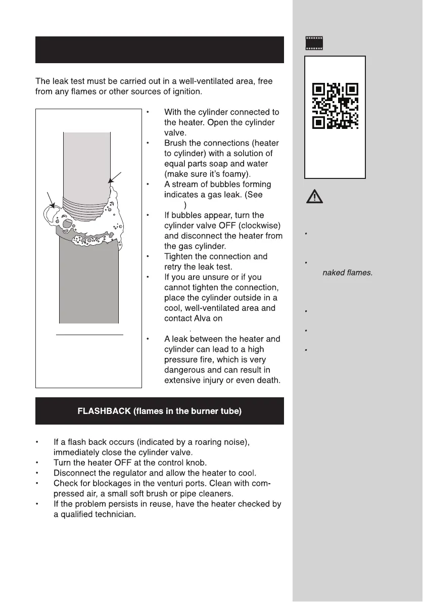 Alva GH312 - LEAK TEST; Gas Leak Safety Protocol; FLASHBACK (flames in the burner tube)
