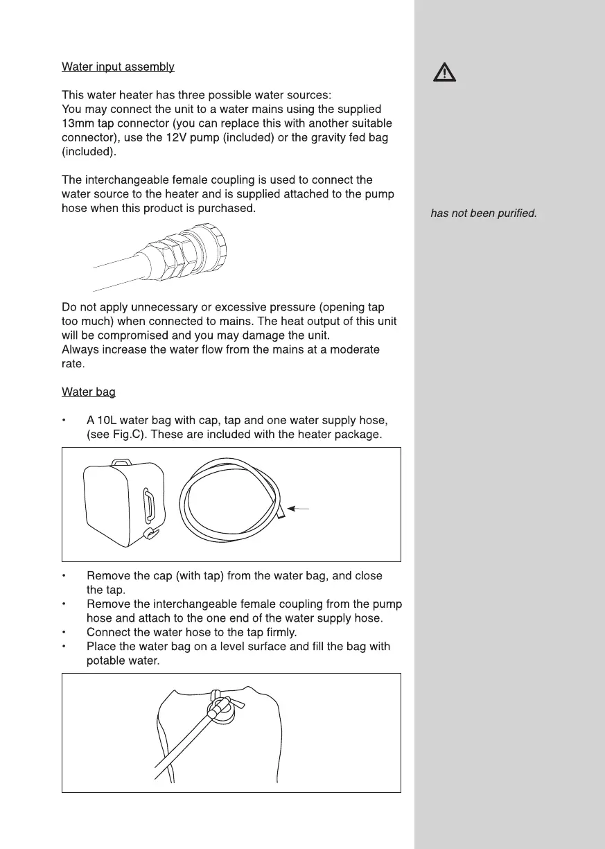Alva GW205 - Water Input Assembly; Water Bag Usage