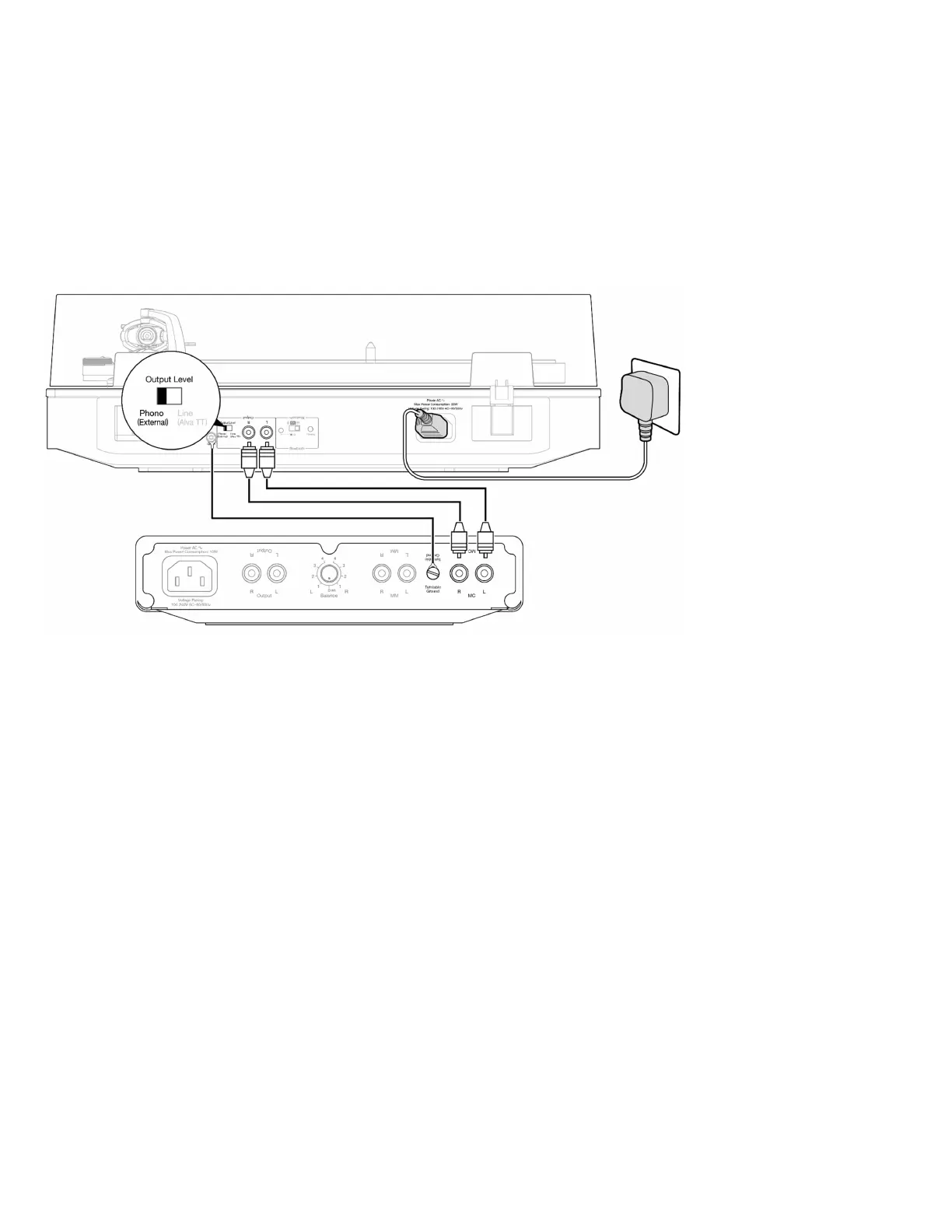 Using high-quality RCA interconnects, connect the audio output of the Alva TT V2 to the phono input of your external phono-stage, or amplifier.3.