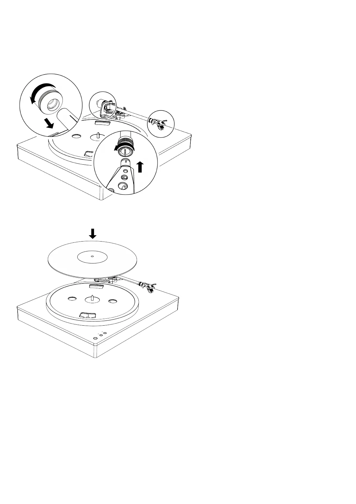 3. Push and rotate counterweight onto tonearm and then carefully insert the headshell into the tonearm.