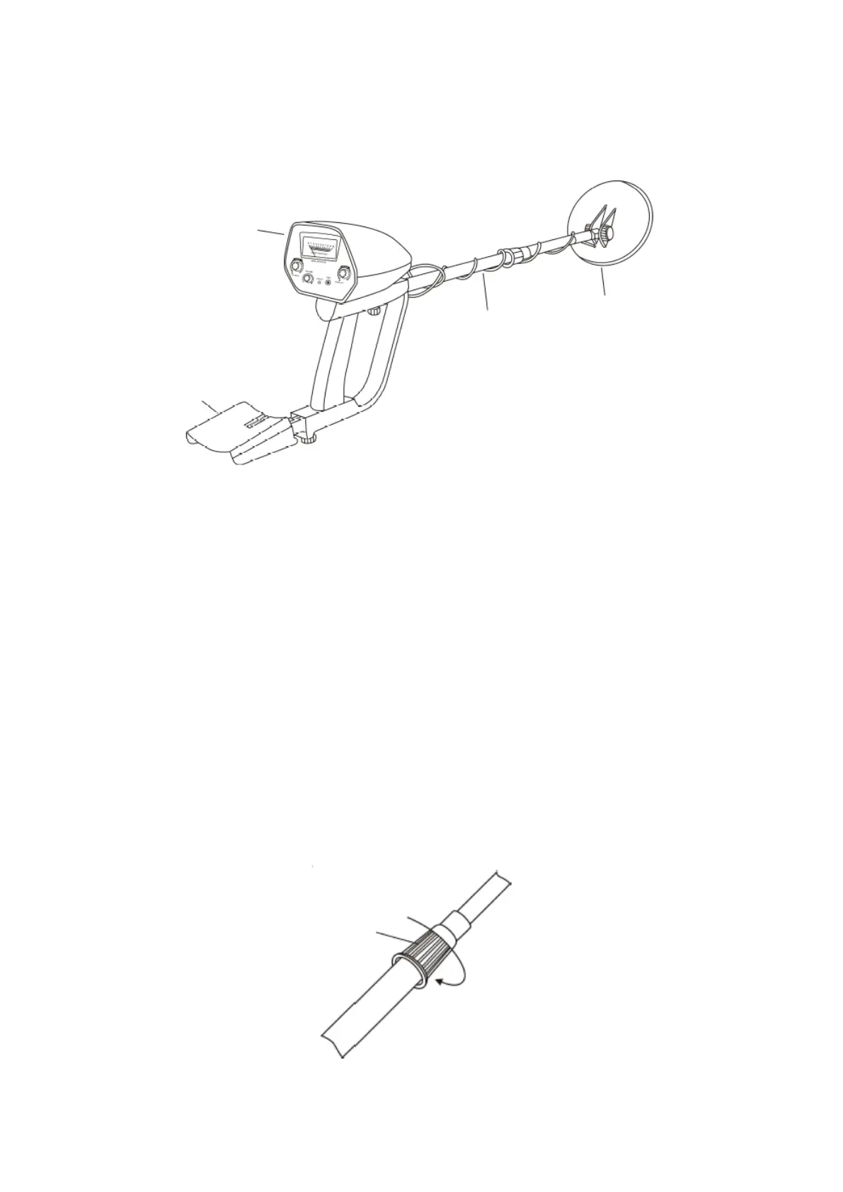 1) Unscrew the fixing knob on the search coil and remove the knobs and the connector.