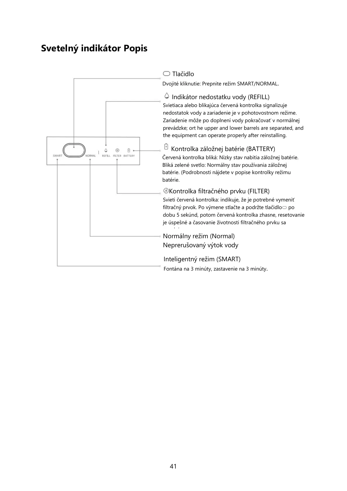 Zariadenie môže po doplnení vody pokračovať v normálnej
