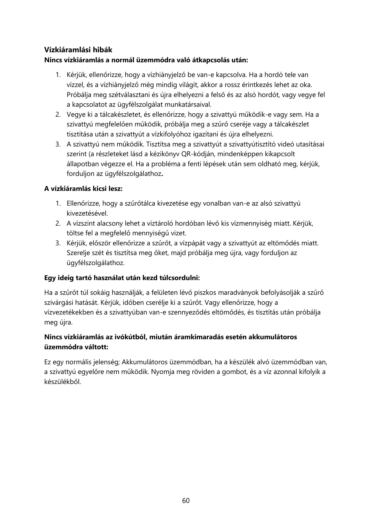 szivattyú megfelelően működik, próbálja meg a szűrő cseréje vagy a tálcakészlet