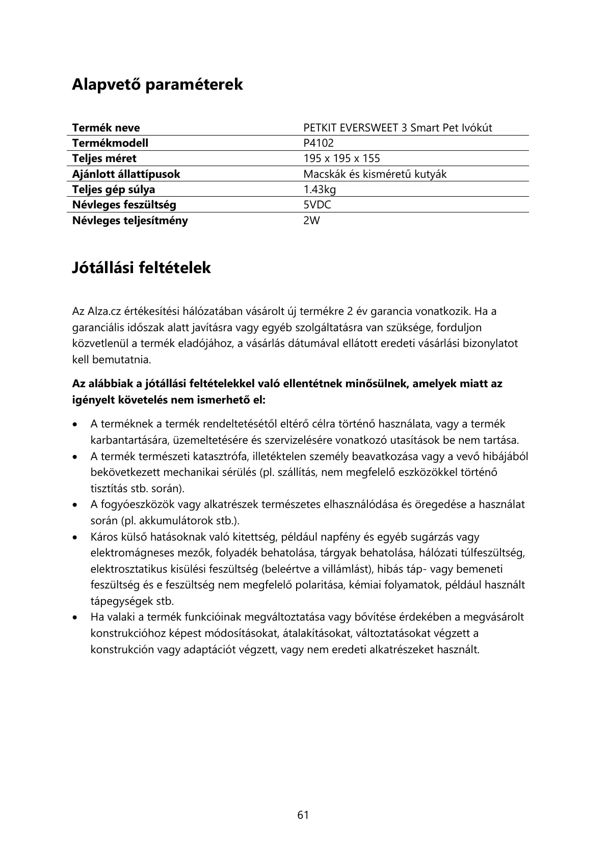 Jótállási feltételek