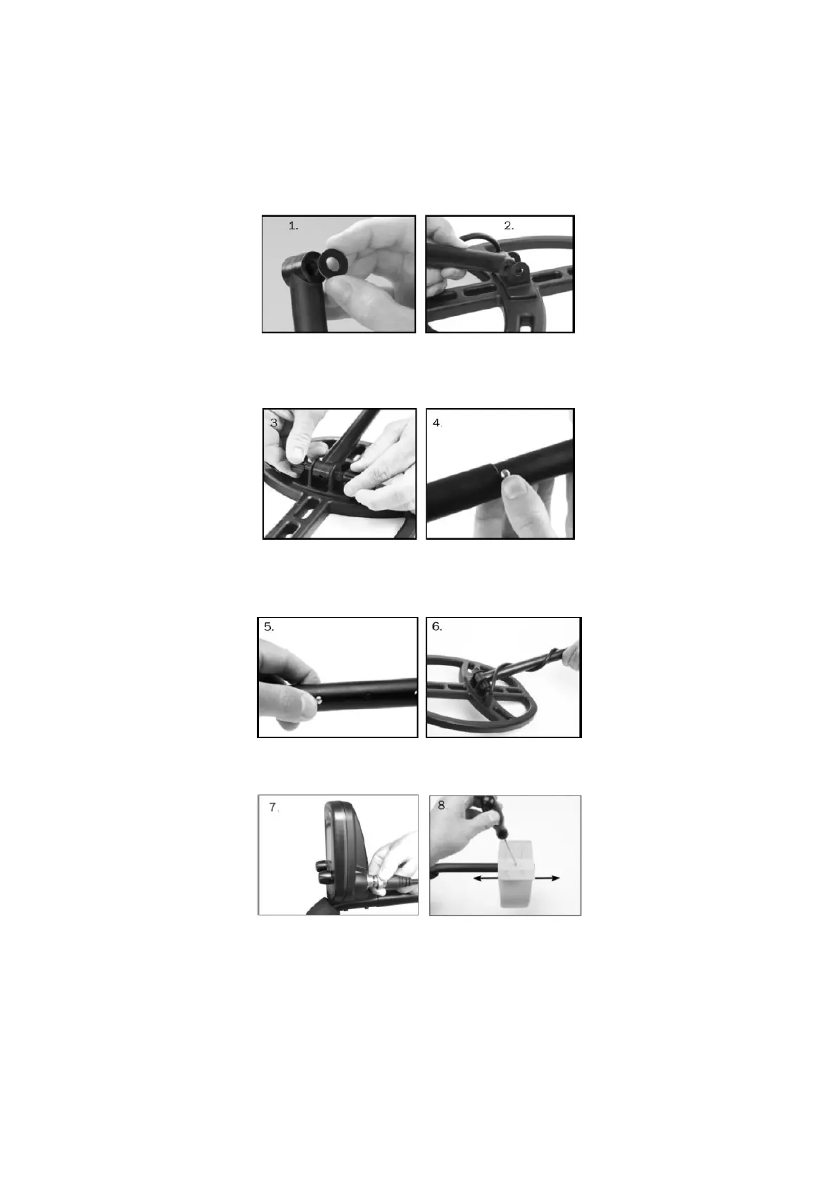 3) Zasuňte šroub se závitem do otvorů spodního dříku a vyhledávací cívky. Ručně