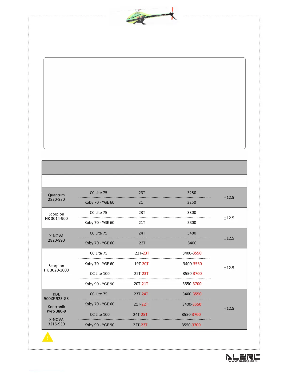It is important to choose the right reduction ratio to maximize efficiency based on your required flight performance.