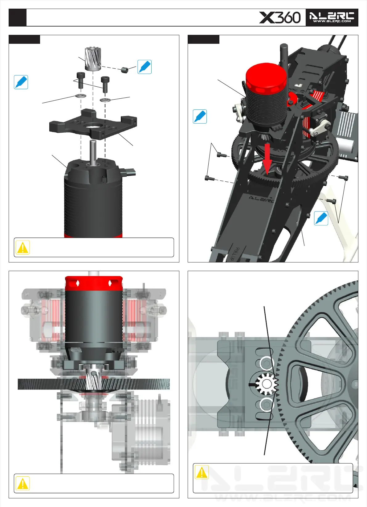 安装完成后确认马达齿轮与斜主齿轮持平,如图!