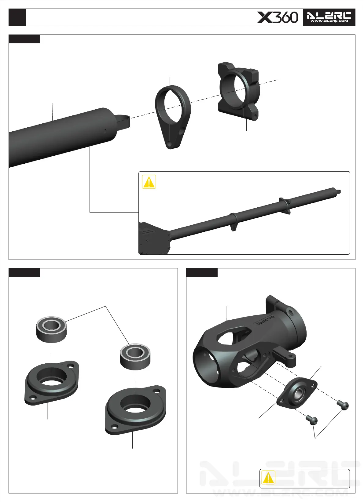 Put the tail control guide and stabilizer mount into the tail boom first before