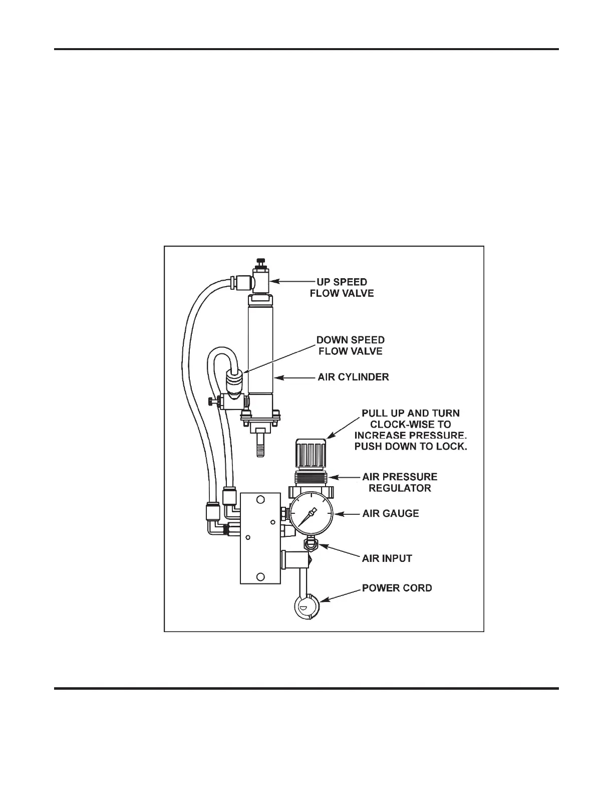 Turn the regulator(s) fully counter-clockwise to insure minimum air pressure. Turn on the air supply.