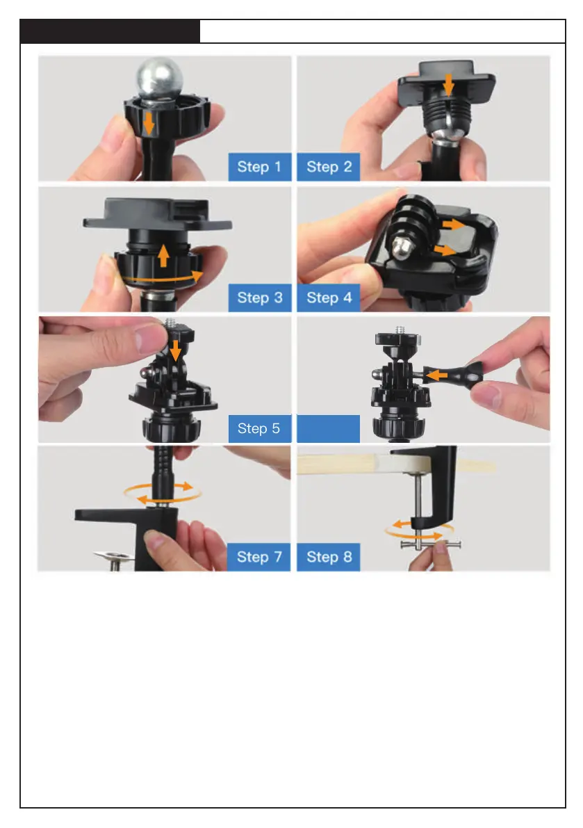 Step 7: Align the iron tube with the desk clamp and knob to tighten.