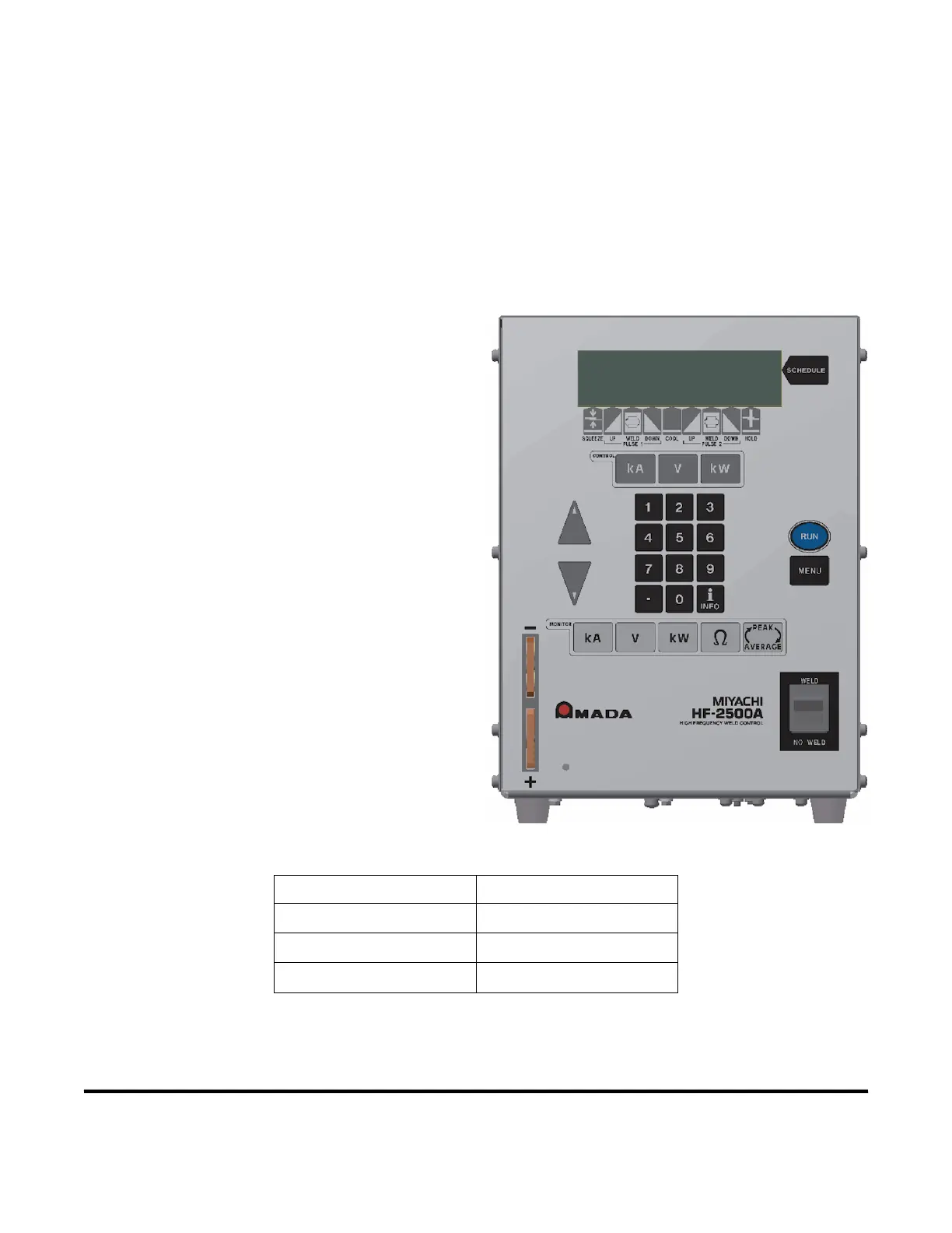 NOTE: For the rest of this manual, the AMADA WELD TECH HF-2500A High Frequency Weld