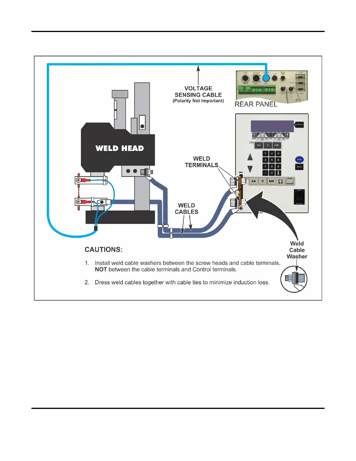 2. Connect one end of the second weld cable to the positive (+) welding transformer terminal on